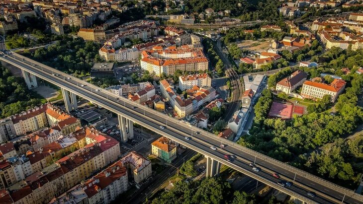 Nusle Bridge (Czech: Nuselský most) is a prestressed concrete viaduct in Prague, Czech Republic. It connects Prague 2 and Prague 4, across a valley which forms part of the Nusle district. The bridge is one of the longest in the country and carries two footpaths, a multi-lane road and part of the city's rapid transit network.