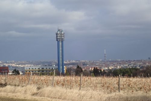 The Devín water tower (and the associated Devín pump station) is a building of Prague's water management infrastructure. The purpose of the technological construction is not (in contrast to classic water towers) the accumulation of drinking water in the reservoir, but the damping of pressure water shocks arising in the supply line of the Želiv water from the reservoir in Jesenice near Prague. The Děvín water tower is located on Prague's Děvín hill (310 m above sea level) above the left bank of the Vltava River in the locality called Dívčí hrady in the cadastre of Prague 5, at the border of Hlubočep and Radlice.